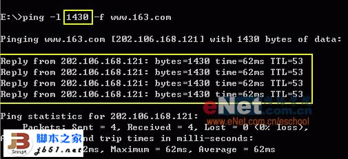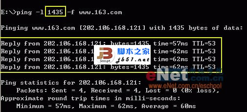 3. 观察反馈结果并判断ISP的MTU值(请注意图中标黄框部分)
