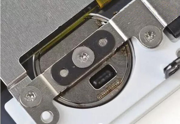 在手机的内部,我们发现了两排“三点式”螺丝,其中一排当中的螺丝就是用来固定覆盖在显示屏排线和电源控制器上面的线缆架子,另外一排则是固定显示屏排线的架子。“三点式”螺丝并不常见,也许你会觉得这些螺丝的防滑性更强,但即使它真的很有优势,那么我们之前在其他 iOS 设备身上也需要频繁看到。