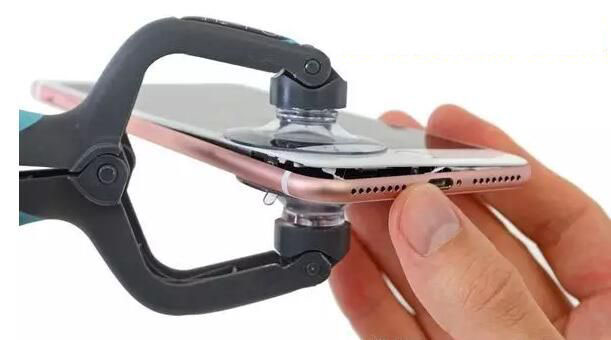 虽然苹果在 iPhone 7 Plus 身上取消了 3.5mm 耳机接口,但依然使用的是 Pentalobe 防撬螺丝,而且机子也一直可以用金属薄片通过后盖与后壳之间的空隙直接切开,然后使用吸盘直接把屏幕吸进去。我们注意到,iPhone 7 Plus 屏幕和后壳之间所使用的粘合剂强度比 iPhone 6s 更高,也许这就是防水的信号之一。