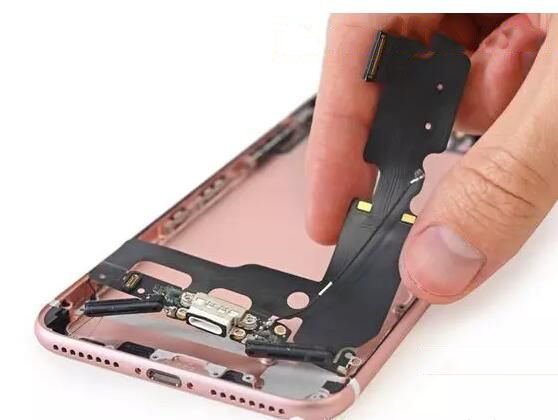 连着 Lightning 连接器组件的带状排线对于防水来说非常重要,它可以让 iPhone 7 Plus 实现水下 50 米防护功能。