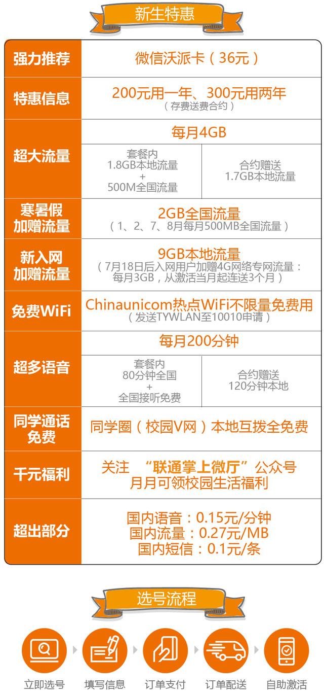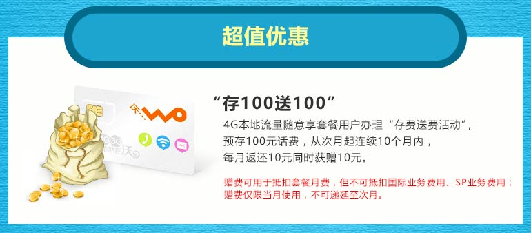 6.北京联通 微信沃派:京东通常价200元、特价100元。12个月免兑换,每月本地1GB+全国200MB(寒暑假700MB)+微信定向300MB。