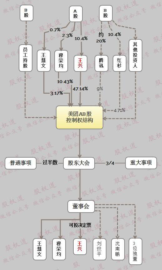 美团的公司章程规定,重大事项需要超过75%的选票,而普通事务则需要超过50%的选票.