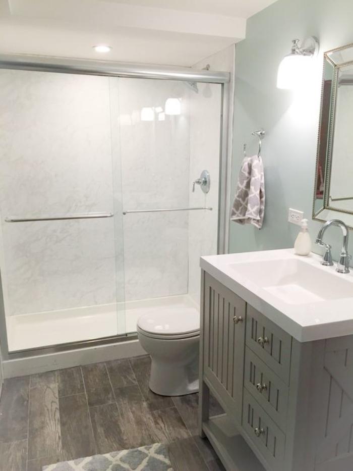 如果您的房屋要排水,则可以选择吊顶或落地浴室柜.
