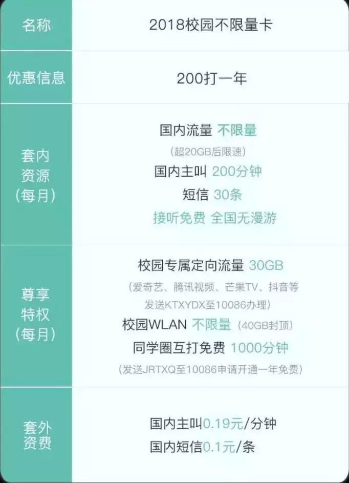 语音: 免费接听电话,每月200分钟的免费电话和1000分钟的免费学生圈.