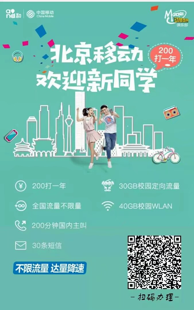 北京移动花钱为北京的新生提供福利. 学生直接使用市场上价值68元的套餐. 流量的使用实际上没有任何限制(每月超过20G的速度限制为1M). 200可以使用一年,一年后可以续期,相当于每月16.7元.