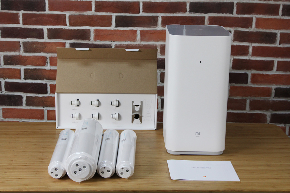 今天,我将带您打开这款厨房式净水器的包装. 打开包装小米净水器厨上式 安装,您可以看到净水器的主机和4个过滤元件. 滤芯用普通的热收缩膜密封,主机用大塑料袋抽成真空. 包装上的保护看起来不错. 毕竟,这与食品安全有关.