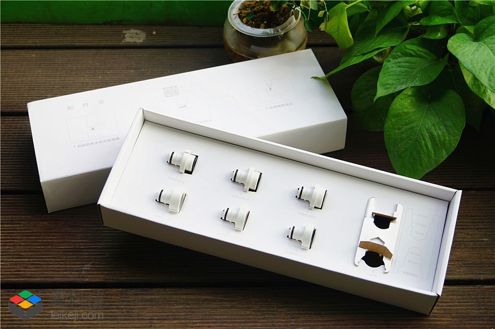 根据水龙头尺寸的不同,它还带有不同规格和类型的水龙头转换接口. 六个接口基本上适合大多数家用水龙头. 另外,还包括一个小扳手,被认为是很周到的.
