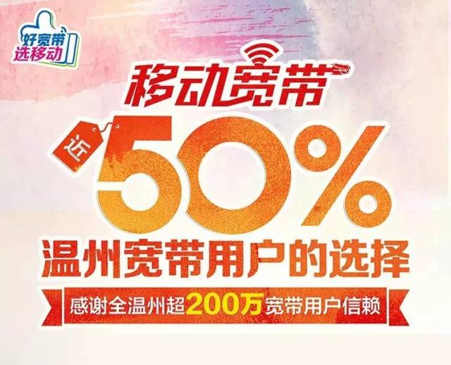 “尽管移动宽带发展较晚,但我们为通过全体移动人群的努力赢得整个地区近50%的宽带用户的信任感到非常兴奋!”温州移动营销部门副经理金章峰感叹. “我们将以200万为起点,竭诚为城市居民提供10点令人满意的Internet体验. ”据悉温州移动宽带网上营业厅,截至2019年2月,移动公司面向新老用户的200M宽带专项活动,有意安装宽带,改变宽带的市民请花时间去移动营业厅.