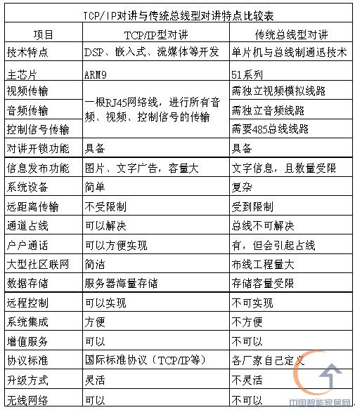 传统的总线系统对讲系统通常是自布线的,并形成一个独立的网络系统. 由于行业标准的缺乏和系统集成的困难,不同厂商的产品无法互联,将可视对讲系统与其他弱电系统也很难互联. 但是,TCP / IP对讲系统可以借用社区的宽带网络. 多个弱电系统可以共享同一宽带网络. 网络成本低. 采用标准接口. 按照标准规范,可以很好地集成子系统并改进设备. 实用性.