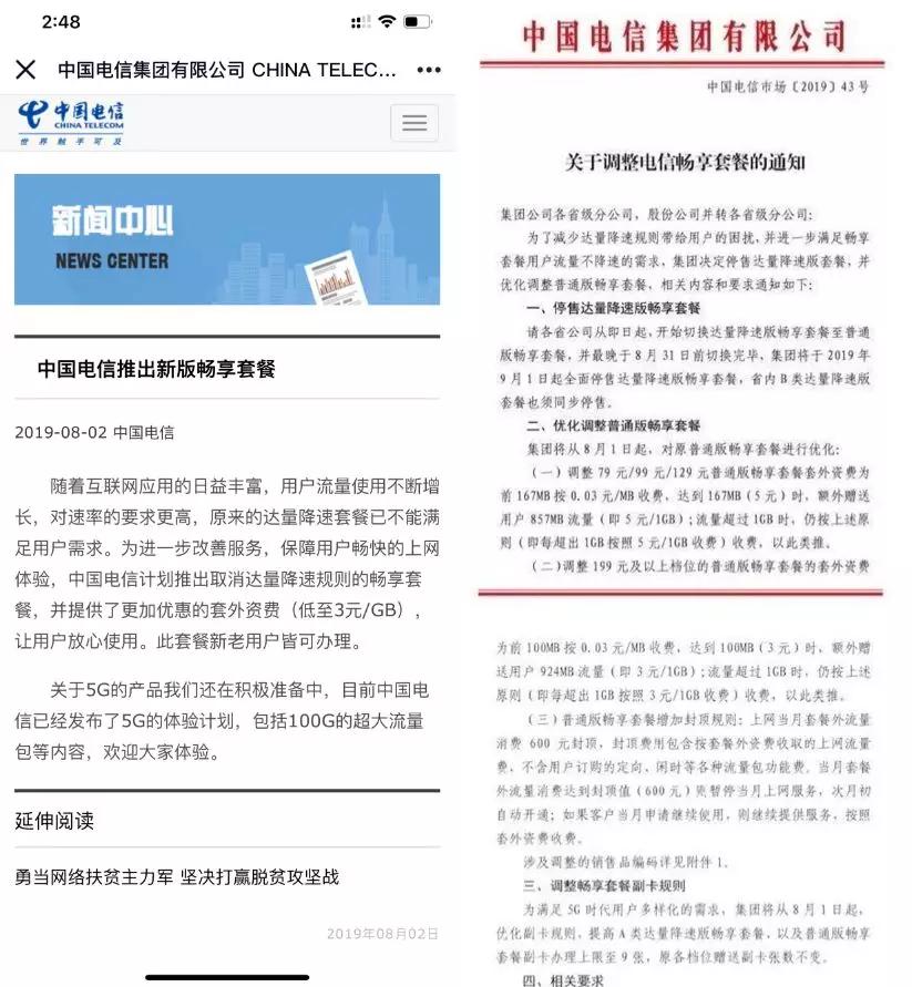 关键点: 中国电信即将取消“无限”套餐. 从现在开始,中国电信将开始从免费版的精简版转换到免费版的普通版,转换最迟将在8月31日完成. 自2019年9月1日起,本集团将停止销售无限量供应的套餐的降价版,并且必须停止该套餐的省级B级降价版.