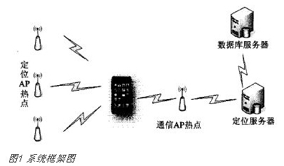 本系统的设计目标是在Android智能终端上实现实时WiFi定位系统,该系统包括客户端、数据服务器以及定位服务器。为了使定位过程和服务器通信过程相对独立,分别设置了专门用于定位的AP热点和客户端与服务器之间的通信AP热点,可有效降低系统环境搭建的初期成本。本方案的系统框架如图1所示。其中的通信AP热点需要与局域网相连,保证定位区域内WiFi信号良好,确保数据传输及处理的及时性。客户端和服务器端通过TCP连接实现可靠传输。位置指纹定位算法