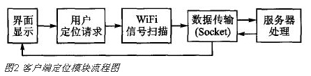 本系统采用客户端/服务器(c/s)的网络架构,客户端的定位过程主要包括WiFi无线信号扫描、数据传输、界面显示等,该过程的流程图如图2所示。
