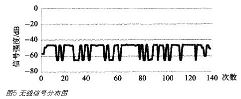 利用改进的方案将图5平滑处理后,改进前的信号强度值RSS=1.597 1,而改进后的RSSI=-46.I47 1,可见本方案能够去除一定的抖动信号,得到较为理想的离线。位置指纹定位算法该方法不仅用于离线数据采样阶段,而且应用于定位阶段实时采集当前无线信号强度,可避免单次采集的不确定性。