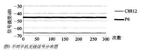 针对设备差异对无线信号的影响,首先在同一位置用华为两款不同型号手机对WiFi信号采集300次,无线信号分布情况如图6所示。C8812型号手机采集信号强度保持在一65~66 dB,P6型号手机信号强度保持在一45dB,不同型号手机可能造成的误差达2O dB,若按此进行定位将产生较大定位误差,因此本文将在实时定位之前加上无线信号校正阶段,能有效提高定位精度。
