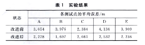 改进前和改进后分别进行4O次测试,实验结果分析如表1所列。应用改进后的算法各测试点的平均误差均有所下降,A点位于出口处,可能会受其他因素影响,定位效果不明显;B、D点,受外界影响较小,定位效果较好,定位精度提高2 m左右。