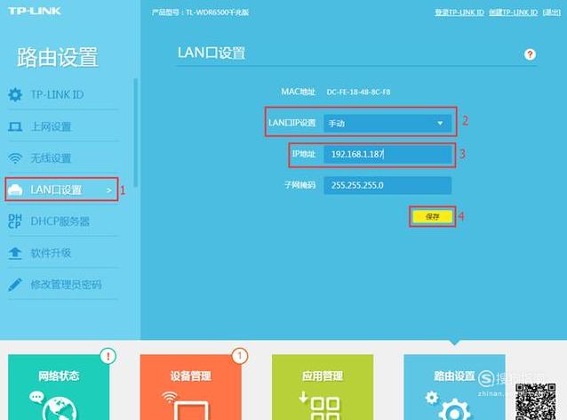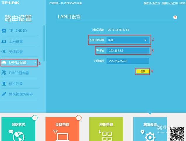 单击“ LAN端口设置” ----->“ LAN端口IP”设置为“手动” ----->,然后将IP地址更改为192.168.3.1(不要与主路由器位于同一网段) ---->保存.