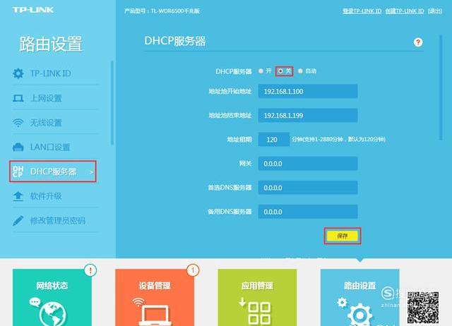 通过单击“路由设置” ----->“ DHCP服务器” ----->将“ DHCP”更改为“关” ----->“保存”.