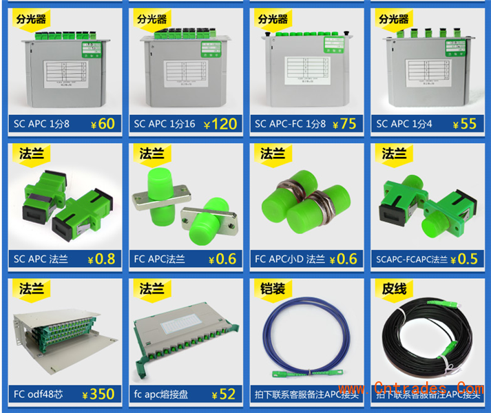 光纤适配器操作简单、稳定可靠、寿命长、易于维护、价格极低。负责连接设备和系统,使光路能按所需的通道进行传输,以完成预定目的,且能随时断开。光纤连接器可精密对接光纤的两个端面,以使发射光纤输出的光能量能限度地耦合到接收光纤中去,在一定程度上,光纤连接器也影响了光传输系统的可靠性和各项性能。光纤连接器有各种形式,一般用于EPON网络中的连接器为APC连接器,APC的端面被磨成一个8度角,目的是为了要减少反射,其工业标准的回波损耗为-60dB。APC连接器具有精确、预定角度、预定半径和预抛光套管,可提供卓越的性能,可与具有NTT-FC标准或无此标准的紧凑按键配置一并使用。