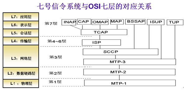 INAP:智能网应用部分 OMAP:操作维护应用部分 CAP:CAMEL应用部分 MAP:移动应用部分 TCAP:事务处理能力应用部分 BSSAP:基站子系统应用部分 ISUP:ISDN用户部分 TUP: 电话用户部分SCCP:信令连接控制部分MTP:消息传递 ISP:中间服务部分