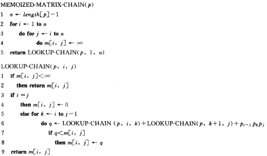 矩阵链乘法的备忘录解法(伪码),来自《算法导论》第15章。