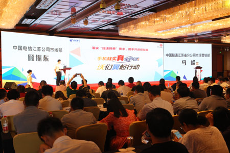 7月12日,中国电信江苏公司与中国联通江苏省分公司联合举行了《关于加快提倡降费六模真全网通终端行动的确认书》,并联合发布了六通的推广模式的完整Netcom终端和行动计划,以加快和降低费用. 双方宣布将进一步实施提速和减费措施,以实现“手机全网通,数据流量无限,服务更好”,使更多的消费者可以享受独立的网络选择,更好的通讯服务,以及增强人们的收获感.