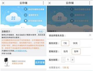 图2:开启云存储,选择套餐后,可购买并使用云存储服务
