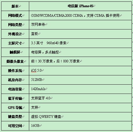 电信版iPhone 4S将不使用老化配置苹果存话费送手机,而是使用单独的卡类型,不仅支持GSM / WCDMA / CDMA2000网络,具有GSM / CDMA双网络功能,还支持CDMA卡. 如果用户使用“天一国际卡”漫游海外,则可以自动切换到WCDMA网络,这将使电信版iPhone 4S更加适应市场,并为消费者带来更加舒适的体验,
