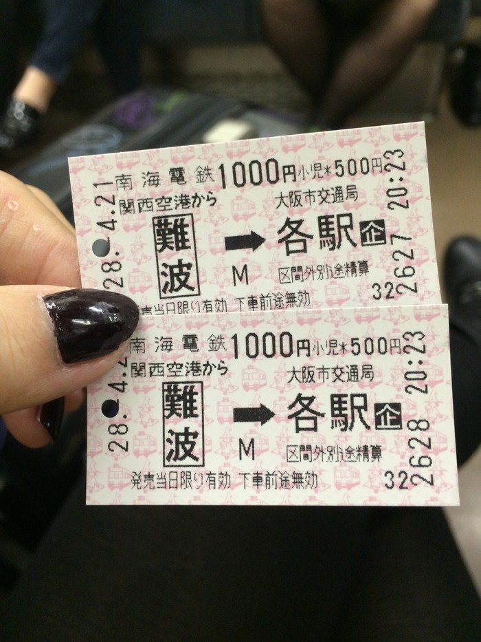 上楼到南海电车二楼,另一位中国员工帮我买了票和一段地铁,外观和价格如图所示