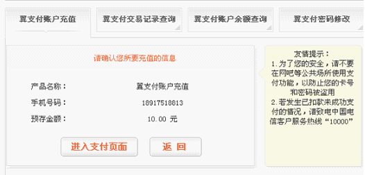 进入翼支付账户充值