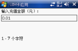 [特别提醒]:"UIM卡应用"进行手机菜单充值示例如下(部分手机显示方式可能略有区别,实际进入路径以用户手机实际菜单为准):
