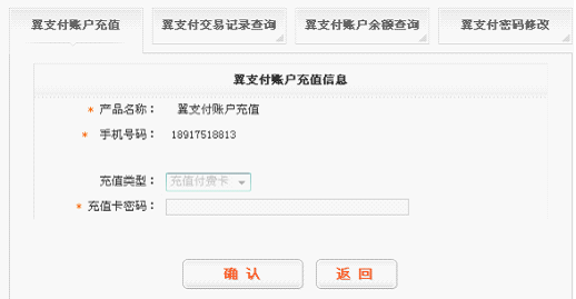 若该设备号已开通翼支付功能,则进入翼支付功能页面。