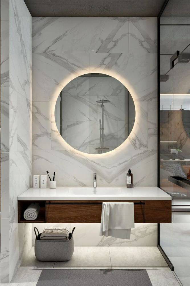 因此,编辑建议您选择具有自己的LED照明功能的浴室镜,以使镜面更清晰,从而更好地进行洗涤和修整.