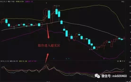 当RSI白线超过80时,表示市场已进入超买状态. 目前,股价没有继续上涨的空间. 您可以适当地出售股票,然后选择等待. 如果RSI白线达到峰值并跌至80以下,您可以清除掉并形成顶部股票.