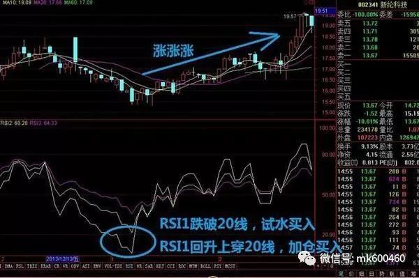 1,RSI1(白线)跌破20然后超过20,这是一个买入信号