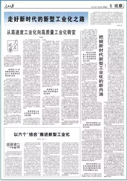 《人民日报》于11月26日出版,用整页的三篇文章集中于“新型工业化”主题. 主题是“沿着新时代的新型工业化道路”. 值得注意的要点包括: