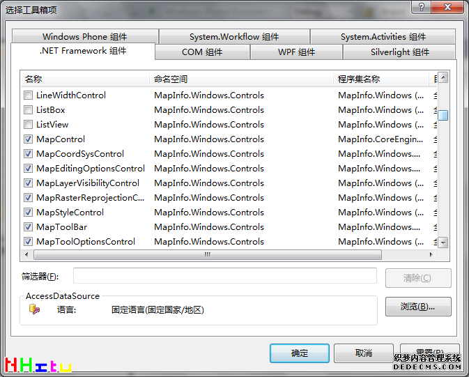 安装完MapXtreme后,可以在VS2010(我用的是visual studio 2010),把安装完的MapXtreme组件引入到Winform模版中的工具箱中,当作一个普通的控件来使用。
