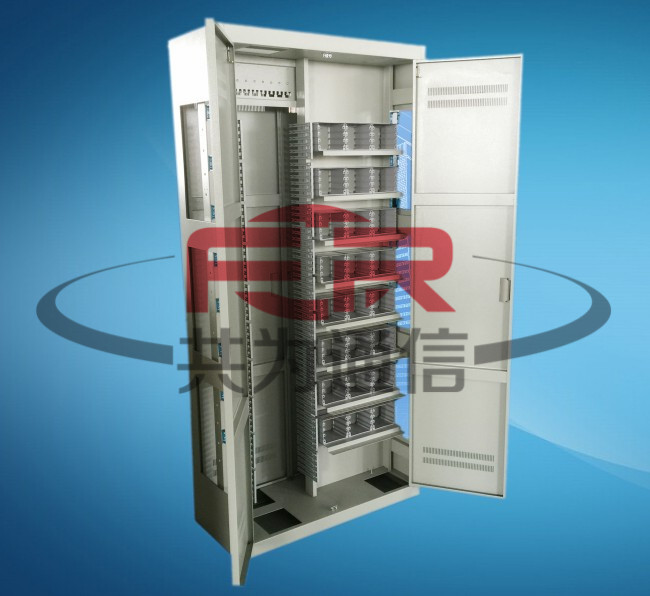 可以便捷地访问连接器和管理光缆,直接提高了网络的可靠性和性能优势。当运营商需要扩张网络或对终端用户配置新业务的时候,华脉通信的的光纤配线解决方案可以满足其未来发展的长期需求。 光纤总配线架:横列侧连接光通信设备,主要连接设备侧,提供设备侧跳纤(尾纤)的固定。直列侧连接外线光缆,主要为室外光缆提供开剥固定,提供加强芯接地装置并能提供外缆成端的设备。直列和横列通过跳线进行通信路由的分配连接。 2.适用环境 : 本机架适用光纤集中管理的中型或大型机房。可用于大光纤数量解决方案。 3.产品特点 1、机柜为整体组装形式。机柜顶部可与机房走线槽道相连,机柜主要考虑上进缆,同时兼顾下进缆的情况。 2、机柜正面为跳纤布放区域,反面为光缆布放区域,从机柜正面看:机柜内部左右各有一条立柱,其安装孔用于安装适配器面板,机架可根据用户配置安装面板数量,每块面板可固定96芯,每个面板下方均配一走线槽,固定在机架正面(跳线侧),负责容纳跳纤通道,固定机架背面(光缆侧)固定有理线架,负责容纳局内光缆开剥后套护套的光纤的通道。 3、设备正面担负着跳纤的路径管理、余纤盘储任务;背面担负着局内光缆的固定任务,背面装有光缆固定夹。全正面操作。可操作性强,易安装,可并架,全程走线保护:分布于走线路径拐弯处的各种弯曲半径保护装置,保证光纤全程的保护特别设计的光缆开剥保护装置,保证了光缆的固定、开剥、接地的可靠适用于带状光缆和束状光缆,上、下进缆皆可。