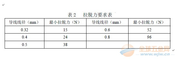 11.接续好的接线端子与导线的拉脱力应符合表2的要求。