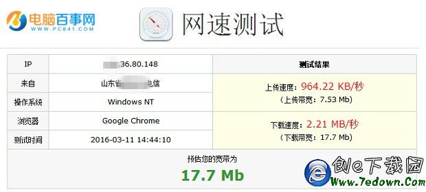从测试结果来看,上传速度相当于的二分之一多一点。从这里可以说明,虽然光纤上传速度也有扣量,但相比ADSL时代的8:1或者10:1已经要好很多了。