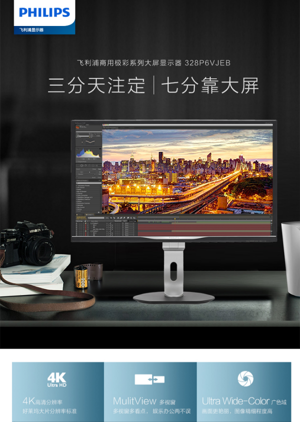 飞利浦328P6VJEB显示器用于31.5英寸高品质大屏幕,可提供3840×2160的真实4K分辨率,更清晰的图像和更精美的图像;具有10.7亿种色彩的10位显示屏+ 12位内部处理器,使其具有更多的色彩还原和过渡效果,对于图形图像设计和视频摄影后期制作非常重要; 95%NTSC色域可以提供更绚丽的图像,为多媒体娱乐,影像和工作带来更鲜艳逼真的色彩. 它可以满足需要极高色彩的人士的一般需求. 该显示器还支持MultiView功能,该功能可以同时输入双源,使工作效率加倍. 在全国所有飞利浦显示器授权商店购买飞利浦328P6VJEB显示器,您将获得价值149元的飞利浦双头剃须刀!