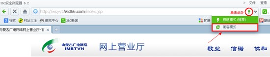 答:部分浏览器可能由于兼容性问题,导致网上营业厅的某些功能无常操作。广电网络智能卡号此时,需要将浏览器模式调整为“兼容模式”才可正常缴费,调整方法如下图所示(以360浏览器、傲游浏览器、搜狗浏览器为例)。