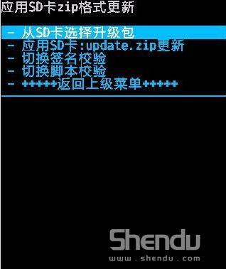 6:使用音量键选择 -从SD卡选择更新 按开机键确认