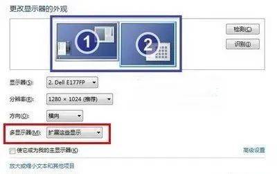将计算机连接到两个显示器之后,默认设置为“扩展显示”功能. 所谓扩展显示就是将显示屏扩展到两个显示器的范围. 例如,一个显示器的分辨率为1440X900,另一个显示器的分辨率为1280X1024. 扩展显示后,总分辨率为1440X900 + 1280X1024. 设置完成后,不同显示器的显示内容将有所不同!