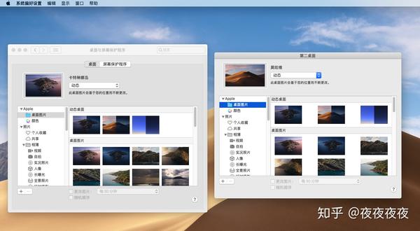 此外,您还可以为Mac和显示器设置不同的桌面. 路径是: 单击左上角>“系统偏好设置”>“桌面和保护程序”>单击后,将弹出两个桌面窗口. 只需单独设置它们即可.