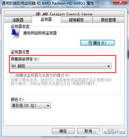 笔记本计算机的刷新率设置太低,导致屏幕抖动。