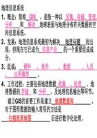 地理信息系统 1、概念:简称 GIS ,是指一种以 采集、存储、管理、分析 和 描述 地球表面与地理分布有关数据的空间信息系统。 2、发展:地理信息系统最初为解决 地理问题 而出现,但现在它已成为 信息产业 的一个重要组成成分。 3、组成: 硬件 、 软件 、 数据 、人员 、 应用模型 。 4、工作过程:主要包括地理数据 收集 、处理 ,地理数据的 存储 和 分析 ,及地理信息输出等环节。 建立GIS的首要工作是建立 地理 。3s技术对于图形数据的输入常用的方法是 扫描纸质地图 后进行数字化处理。 遥感技术 简称 RS ,是指借助对 电磁波 敏感仪器,在不与探测目标接触的情况下,记录目标物对电磁波的 反射 、 散射 、辐射 等信息,揭示目标物的 特征 、性质 及其变化。 2、特点:监测范围 广 ,可覆盖整个地球,能 瞬时成像 、 实时传输 、 快速处理 ,迅速获取信息。 3、工作过程:信息 获取 ——信息 传输 ——信息 处理 ——信息 分析 ——遥感应用 4、组成:RS由 遥感平台、传感器、信息接受装置 、 数字处理设备 及相关技术等组成。 遥感与资源普查1、普查资源、勘探资源、 调查资源等是遥感技术在资源普查中的重要应用领域。