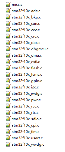 src:在这个目录下存放STM32固件库的.c文件,复制STM32F10x_StdPeriph_Lib_V3.5.0\Libraries\STM32F10x_StdPeriph_Driver\src目录下文件(图10)到该目录下