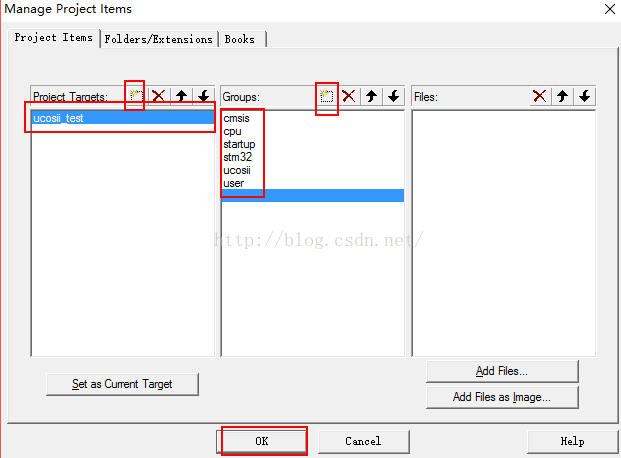将UCOS-II_Project\CPU目录下的所有文件添加到工程里的cpu文件夹下,再将UCOS-II_Project\UCOSII\src目录下所有文件添加到工程里的ucosii文件夹下。(图19)