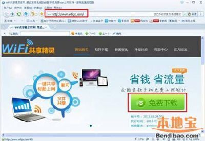 在百度中搜索“Wifi共享精灵”,并从搜索结果页面中点击第一项进入,就会Wifi官方主页,此时就可以看到下载地址。