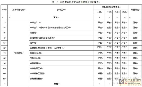 风险等级评估是城市轨道交通安全技术防范系统设计的主要依据之一,根据北京市2009年颁布《城市轨道交通安全防范技术要求》地方标准的表1-2 重要部位安全技术防范设施配置表也可以看出,地铁是高风险区域,是袭击的对象,高清视频监控非常适合,既能看清大场面又能看清细节,对事后分析会有很大帮助,IP高清视频监控组网简单,可靠性高。